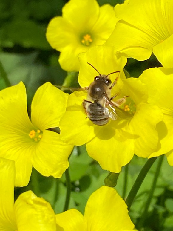 ニッポンヒゲナガハナバチ、コシブトハナバチ科)Eucera nipponensis (apidés-hyménoptère), 12-14mm, avril-juin. 737. Individu femelle, aux antennes plus courtes que le mâle, voir ci-dessus. Fait son nid dans le sol.