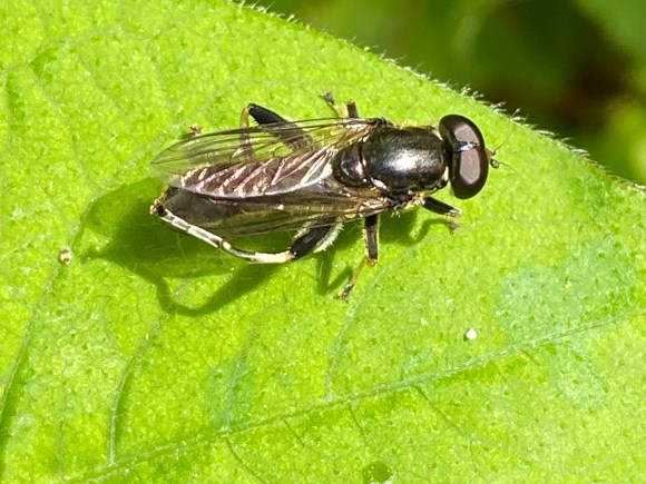 アシブトハナアブ、Helophilus eristaloideus, Syrphidés, mars-octobre. KT581. Elève ses larves dans l’eau.