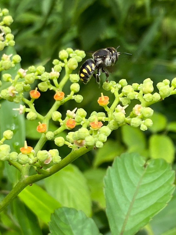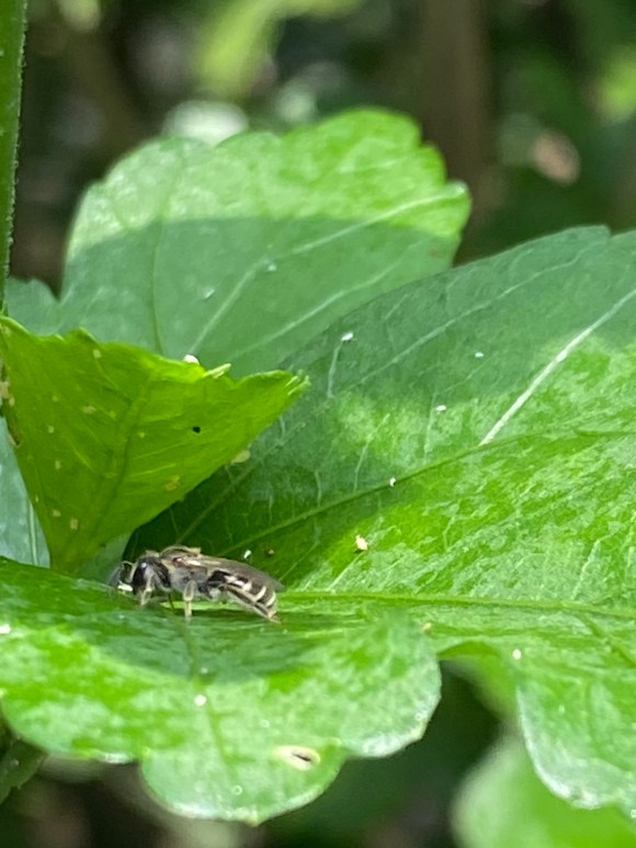 バチ、(ハチ科), (apidé-hyménoptère), 7-10mm, mai-septembre. 734. Absente en début du mois de juillet, les abeilles refont surface alors que chaleur et pluie faiblissent.