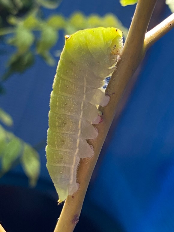 アオスジアゲハ、(アゲハチョウ科), Graphium sarpedon (papilionidés-lépidoptères), voilier bleu, 35-60mm, mars-novembre. Derniers jours avant de devenir une chrysalide.