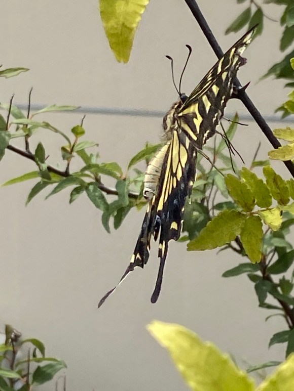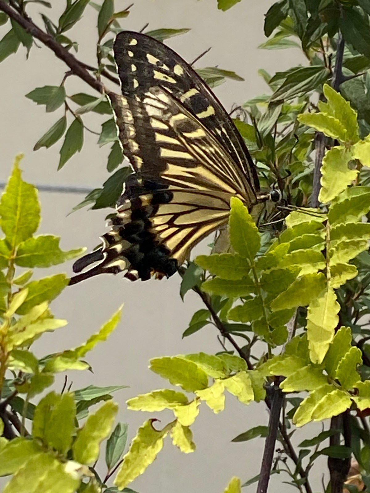 Machaon japonais venant pondre sur un poivrier du sichuan